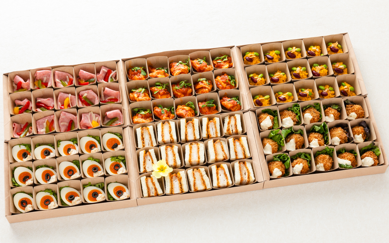 おもてなしにや交流会にも最適プラン お料理でオシャレ&カジュアルな楽しいパーティーをお届けします。ひとりずつボックスに分けていますので、取り分け不要。 会話にじっくり時間を費やしたいレセプションや懇親会におすすめです。