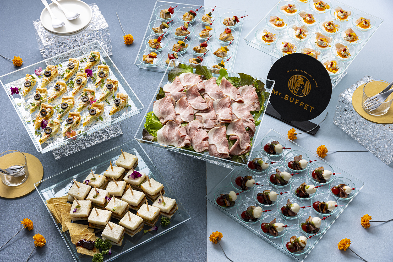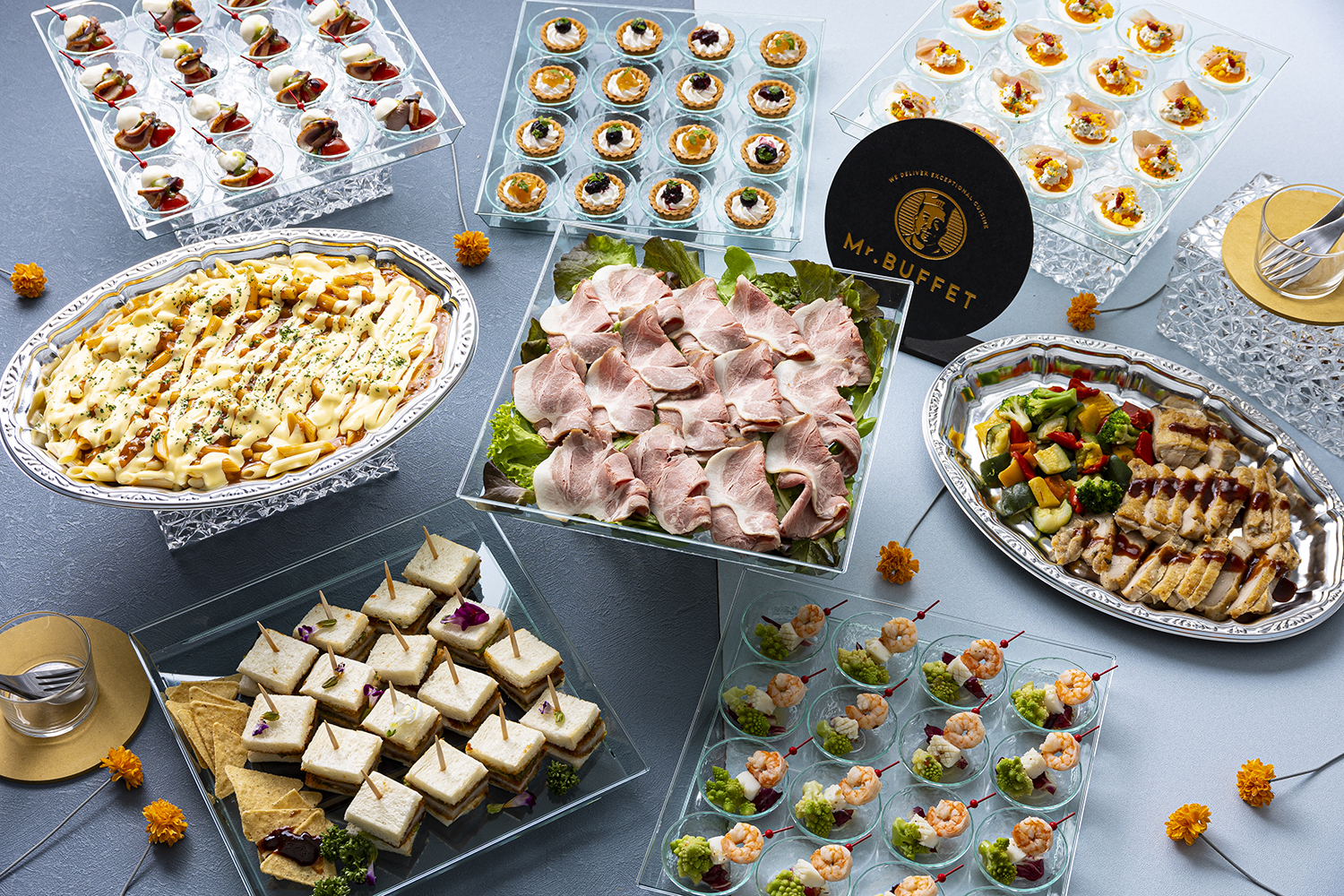 Mr.Buffetの一推しプラン。 内容もボリュームも大満足いただける贅沢なオードブルセットです!シェフが一品一品丁寧に仕上げた豊かな味わいと美しい盛り付けをそのままお届けいたします。 幹事様もゲストと共に素敵なひとときをお楽しみいただけます。
