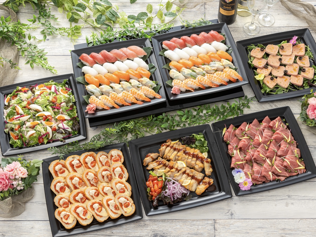 おもてなしや記念日に。 特別なお客様をお迎えしての懇親会やパーティーなどにお勧めする当店の最高級プラン。 プロのシェフが厳選した新鮮な食材を使い、丹精込めて仕上げたオードブルは、見た目も味も絶品です。 パーティー、家族の集まり、会社のイベントなど、どんなシーンにもぴったりです。 準備に時間を取られることなく、手軽に豪華な料理を楽しむことができ、ゲストにも喜ばれること間違いなしのプランです。